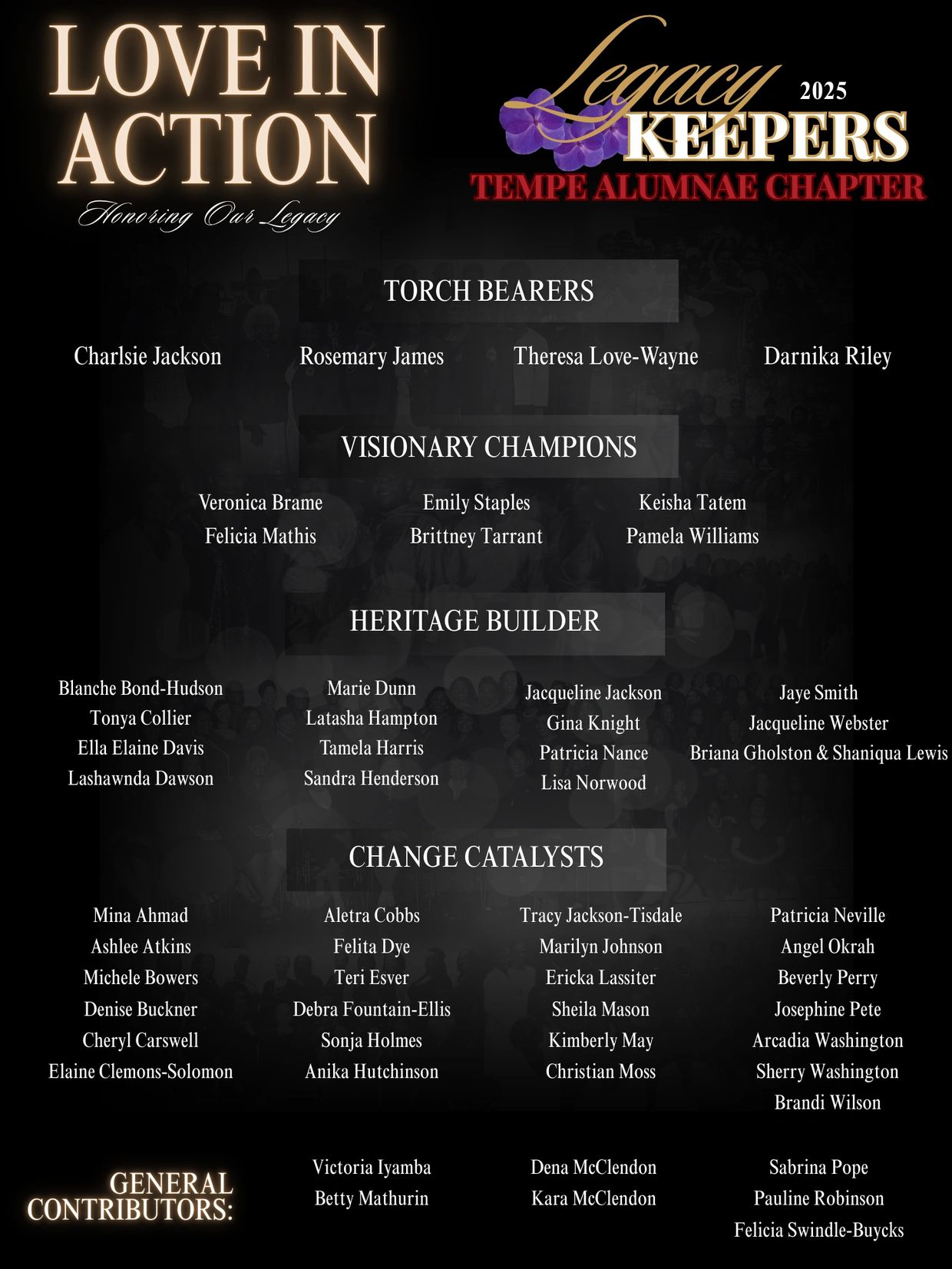 Tempe Alumnae is comprised of over 70 women ranging in age from 25-85 with diverse expertise in accounting, agriculture, banking, chemistry, communications, computer science, counseling, education, engineering, environmental science, government, immigration, medicine, physics, real estate, and religion.